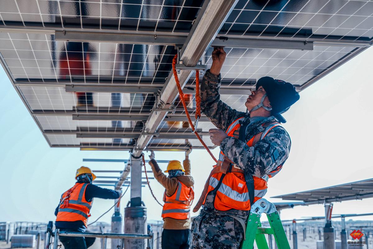 2022년 12월 15일, 토토 스포츠의 Ningxia Tengger “Shagehuang” 신에너지 기지 Zhongwei 1단계 1,000,000kW 태양광 프로젝트가 송전선 배선 작업을 수행하고 있습니다 기지에는 부스터 스테이션 4개, 에너지 저장 발전소 3개, 콘덴서 7개를 갖춰 신에너지 발전의 변동을 정확하게 안정화하고 친환경 전력을 '안정적으로 전달하고 사용할' 수 있도록 한다 사진 제공: Liu Tianqi